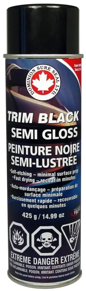 Le produit Trim Black restaure la quasi-totalité des garnitures automobiles noires et leur redonne leur aspect d'origine. Spécialement formulé pour adhérer aux garnitures en métal, acier inoxydable, chrome et autres plastiques correctement nettoyés.