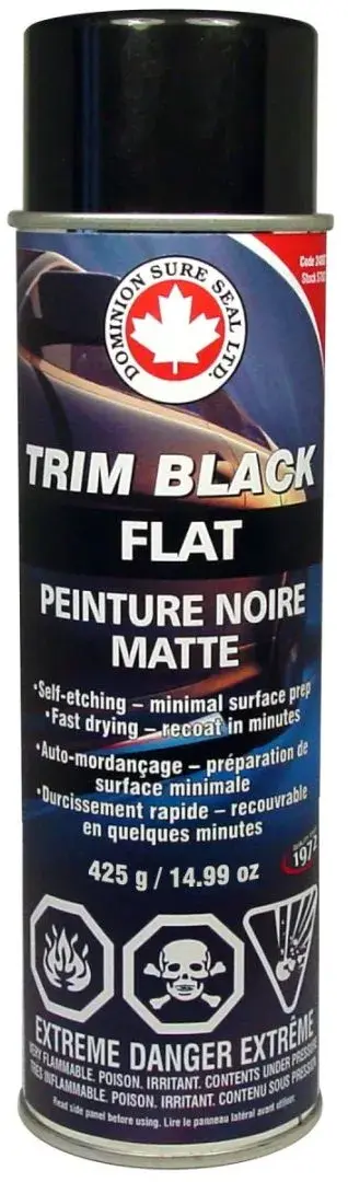 Le produit Trim Black restaure la quasi-totalité des garnitures automobiles noires et leur redonne leur aspect d'origine. Spécialement formulé pour adhérer aux garnitures en métal, acier inoxydable, chrome et autres plastiques correctement nettoyés.
