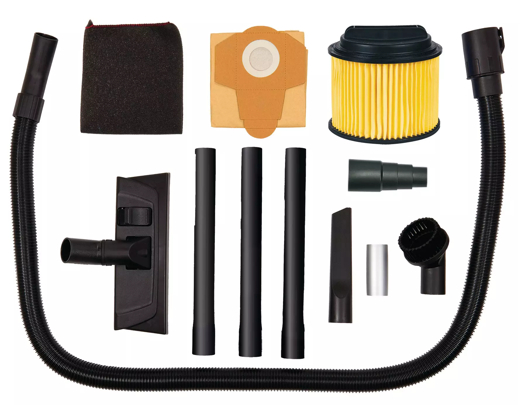 L’aspirateur sec/humide 5.3 gallons (20L) sans fil 2347137 d'Einhell est un membre haute performance de la série Power X-Change, la série de systèmes flexibles et interchangeables d'Einhell.Un aspirateur sec/humide est une aide indispensable pour les travaux de nettoyage minutieux, en profondeur et intensifs.Les textiles tels que les sièges et housses de voiture, les canapés ou les canapés sont nettoyés en profondeur dans les fibres avec un aspirateursec/humide, et pas seulement en surface. Même pour les moquettes ou les textiles fixes, ainsi que pour les carrelages ou tous types de carreaux vernissés à pores ouverts, le nettoyage des surfaces seul ne suffit souvent pas.L'aspirateur sec/humide assure un nettoyage en profondeur et constitue un complément idéal aux appareils de nettoyage ménagers standards lorsqu'il s'agit de saletés tenaces et incrustées.Pour les terrasses et les balcons, l'aspirateur sec/humide redonne de l'éclat aux surfaces non sensibles à l'eau, aux sols et panneaux muraux, ainsi qu'aux joints et entretoises de balcon.Toutes les batteriesde la série Power X-Change peuvent être combinées avec tous les appareils PXC. Le réservoir en acier inoxydable antirouille a une capacité de 5,3 gallons (20 L) et le tuyau d'aspiration d'un diamètre de 36 mm (1-3/8"") maintient un débit d'air et de saleté élevé.Le raccord de soufflage est destiné au nettoyage par soufflage des zones difficiles d'accès telles que les coins, les angles délicats ou sous les escaliers.Quatre roulettes robustes assurent une bonne mobilité et flexibilité. Pour un rangement soigné des accessoires, il y a un support d'accessoires pratique.Le produit est fourni avec un tuyau d'aspiration en plastique de 1,5 m (4.9 pi.) et un tube d'extension en trois parties, une grosse buse combinée, des buses plat et pour rembourrage, ainsi qu'un filtre en mousse, un filtre plissé et un sac de poussière en papier. Batterie et chargeur vendus séparément.