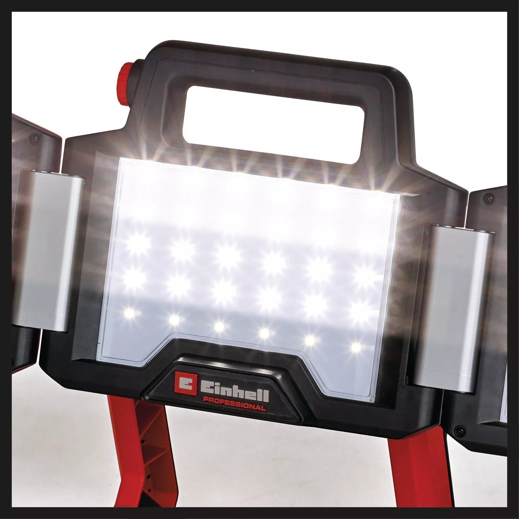 La lampe de travail à DEL Professionnelle à panneaux pliants 3600 lumens sans fil 4514173 d'Einhell éclaire les zones sombres sur les chantiers, à l’atelier, dans le garage ou dans le jardin. Cet ensemble comprend une lampe de travail sans fil et un trépied. Une puissante batterie Lithium-Ion de la gamme innovante Power X-Change assure une luminosité optimale. Cette lampe lumineuse fait partie de la gamme intelligente Power X-Change, dans laquelle tous les appareils et batteries peuvent être combinés. Avec un total de 60 DEL puissantes à intensité variable produisent un flux lumineux de 3600 lumens pour éclairer de manière optimale tous les coins et recoins. Grâce à sa tête lumineuse pivotante, la lampe de travail sans fil est extrêmement flexible. Les deux panneaux lumineux situés à gauche et à droite peuvent en outre être réglés afin d’éclairer une surface étendue sur 270° maximum. Avec une température de couleur de 5 700 K, les DEL génèrent une lumière blanc neutre pour un éclairage très clair. Cette lampe de travail sans fil très pratique se transporte facilement grâce à sa poignée intégrée dotée de surfaces souples. Les multiples possibilités de fixation offertes par le crochet de fixation et les œillets intégrés permettent une utilisation universelle. Le trépied en aluminium robuste de haute qualité est l’accessoire parfait pour votre chantier. Tous les appareils et lampes de travail comportant un filetage 5/8" peuvent être fixés sur ce trépied, notamment la lampe de travail sans fil. La hauteur de service de la tige télescopique du trépied peut être étendue de 85 cm à 170 cm (33-1/2" à 67"). Ce trépied se range et se transporte sans encombrement. Les pieds et la tige télescopique se montent et se démontent facilement et rapidement grâce aux fixations à vissage rapide intégrées. Les pieds du trépied sont dotés de patins en plastique de haute qualité comportant une surface d’appui nervurée antidérapante pour une bonne stabilité. L’appareil est vendu sans batterie ni chargeur. Ces accessoires sont disponibles séparément.