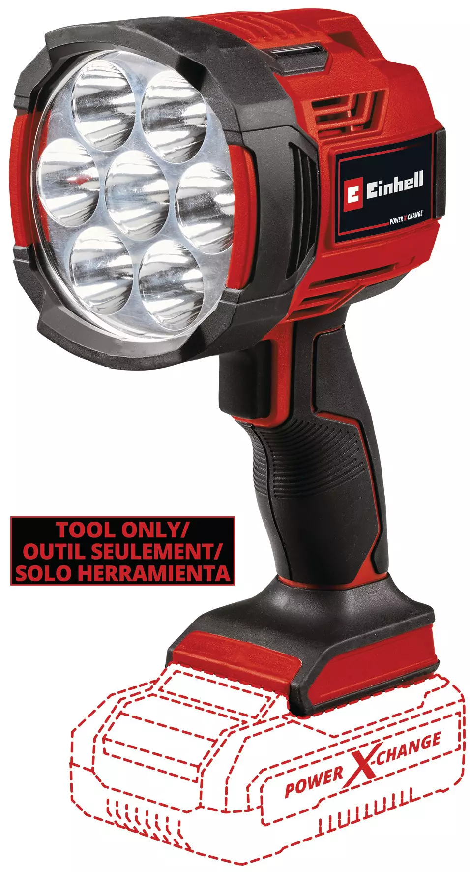 Avec un flux lumineux de 2,500 lumens, la lampe sans fil TE-CL 18/2500 LiAC Einhell fournit un bon éclairage dans les zones sombres. Au sein de la gamme Power X-Change, toutes les batteries sont compatibles avec la lampe. Cette lampe sans fil est très pratique aussi bien dans les endroits mal éclairés comme la cave ou les chantiers, que dans les combles ou les recoins sombres de l’atelier. Disposer d’une lampe sans fil pratique et maniable permet d’avoir une visibilité totale sur ce qui se passe en cas de panne d’électricité, et de conserver une source de lumière indépendante du secteur lors de vacances en camping, de randonnées nocturnes, de promenades après le coucher du soleil ou d’autres activités en extérieur. Grâce aux 7 DEL puissantes et durables produisant un flux lumineux total de 2,500 lumens et une température de couleur de 6,500 K, cette lampe sans fil est non seulement plus lumineuse, mais aussi plus robuste et résistante aux chocs qu’une lampe halogène du même type. Deux niveaux de luminosité assurent un éclairage idéal. La fixation sur un trépied est possible grâce au filetage 1/4" spécifique. Grâce à son design étroit et léger, et à sa poignée ergonomique avec revêtement souple, la lampe est facile à manipuler et polyvalente. L'outil est vendu sans batterie ni chargeur de la gamme Power X-Change : ces accessoires sont disponibles séparément, notamment dans le « Starter Kit », très pratique.