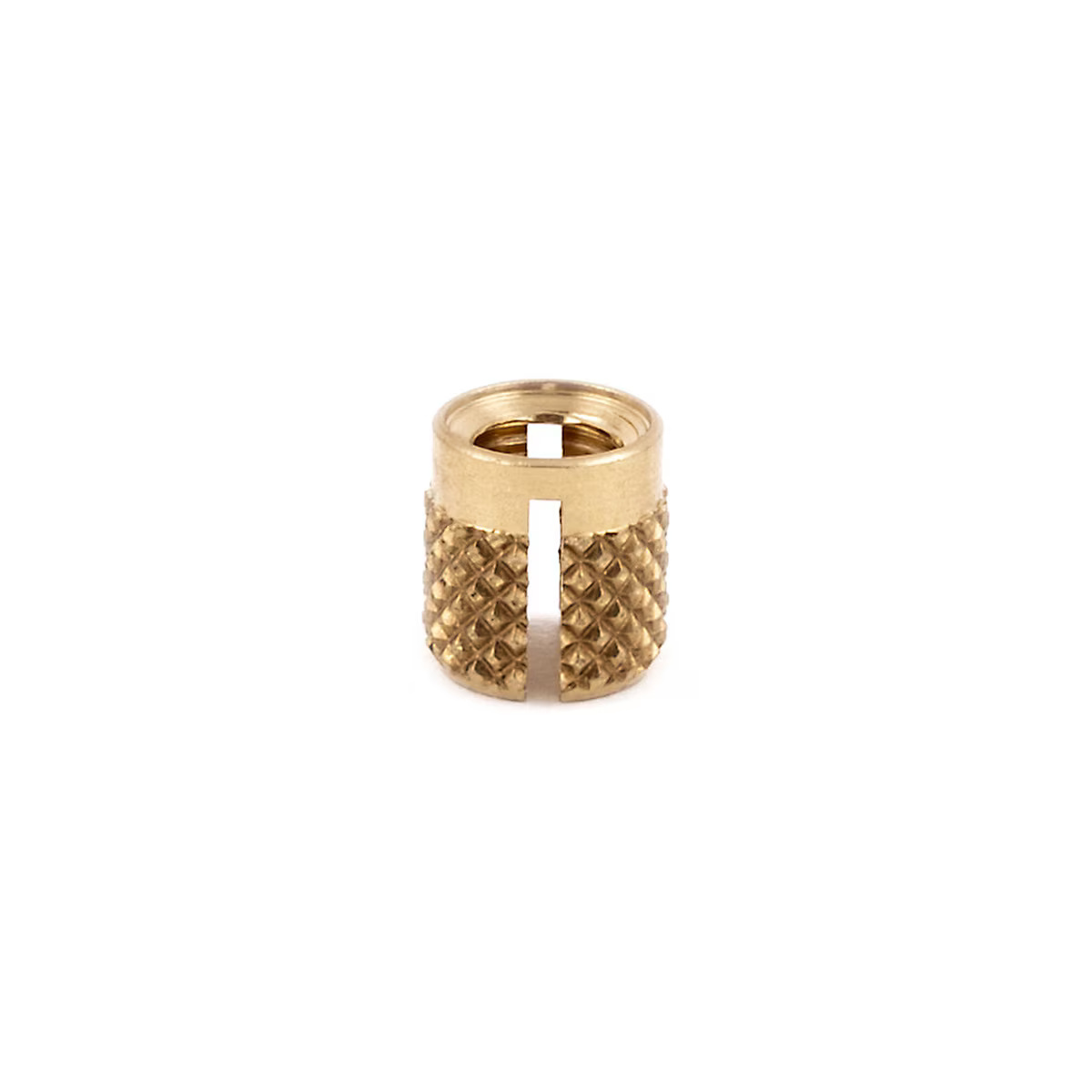 E-Z PRESS THREADED INSERT FOR PLASTIC - FLUSH - BRASS - 8-32 - .250" LONG PQT: 100