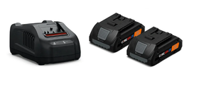 2 batteries Li-ion CORE à cellules haute puissance avec chargeur rapide GAL 1880 CV. Temps de recharge courts grâce au courant de charge élevé de 8 ampères, au refroidissement actif et à la gestion de charge à commande de processus. Pratique et peu encombrant grâce au dispositif pour enrouler le câble secteur. Pour tous les blocs-batteries avec interface de batterie 18 V AMPShare ou Bosch Professional. Temps de recharge (jusqu’à 80 % de la capacité max.) : GBA 18 V 2.0 Ah : 15 min, GBA 18 V 4.0 Ah : 25 min, GBA 18 V 5.0 Ah : 35 min, CORE 18 V 4.0 Ah : 32 min, CORE 18 V 8.0 Ah : 68 min, CORE 18 V 12.0 Ah : 113 min
