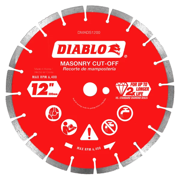 La lame de découpe segmentée diamantée pour maçonnerie de Diablo offre une durabilité extrême et une durée de vie prolongée dans le béton, le béton armé, la brique et le parpaing. Ces disques à bord diamanté offrent jusqu’à 2 fois plus de durée de vie que les disques diamantés standards. Les diamants de qualité industrielle, associés à un corps de lame durci, assurent une durabilité durable et maximisent la qualité de coupe dans les matériaux durs, même dans des conditions extrêmes.