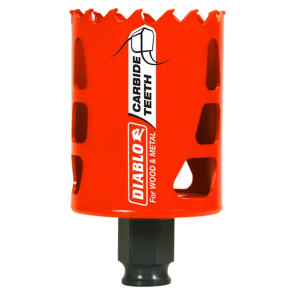 Diablo présente les premières scies-cloches à dents carbure sur le marché capables de couper à la fois le bois et le métal (bois, bois clouté, plastique, aluminium, métal, fonte, acier inoxydable et métal). Offrant une durée de vie 50 fois plus longue que les scies-cloches bimétal, ces nouvelles scies-cloches à dents carbure assurent des performances de coupe plus rapides et une productivité accrue.
