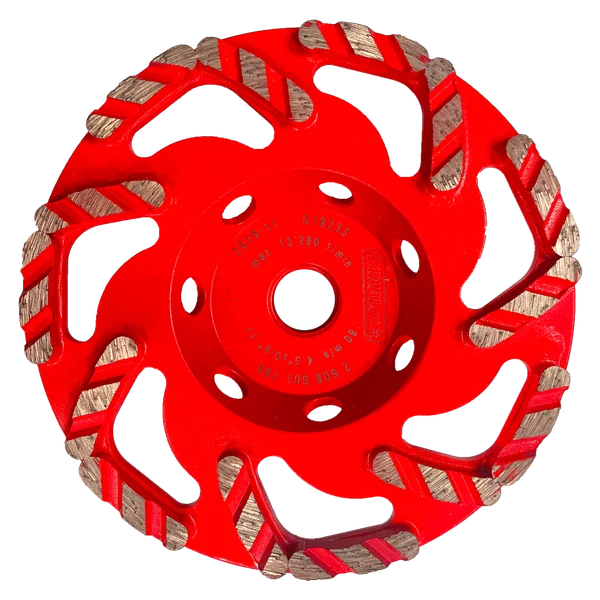 Segments diamantés en L optimisés et répartition des diamants garantissant une exposition constante des diamants pour des performances maximales dans le meulage du béton.