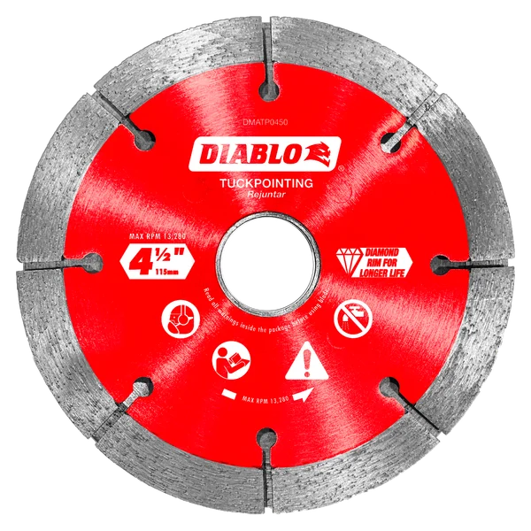 Les lames diamantées Tuck Point de Diablo offrent une durabilité extrême, un temps d’arrêt minimal et une productivité accrue pour l’enlèvement du mortier dans les joints. Elles sont dotées d’une conception intégrée à double lame qui « sandwich » deux lames séparées par une rondelle, permettant un enlèvement ultra-rapide du matériau dans les joints de mortier. Le corps de disque renforcé et les diamants de qualité industrielle garantissent une durabilité durable et une qualité de coupe maximale dans les matériaux durs, même dans des applications extrêmes.