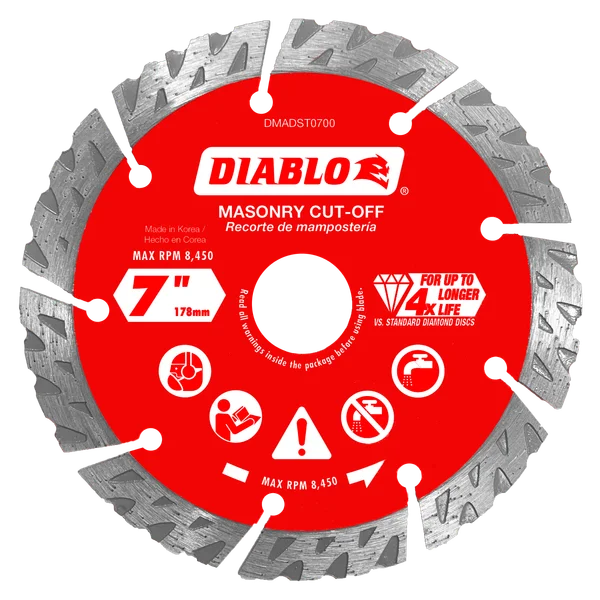 Les lames de découpe segmentées diamantées pour maçonnerie de Diablo offrent une durabilité extrême et une durée de vie prolongée dans le béton, le béton armé, la brique et le parpaing. Ces disques à bord diamanté offrent jusqu’à 2 fois plus de durée de vie que les disques diamantés standards. Les diamants de qualité industrielle, associés à un corps de lame durci, assurent une durabilité durable et maximisent la qualité de coupe dans les matériaux durs, même dans des conditions extrêmes.