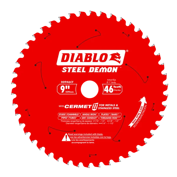 Les lames de scie Steel Demon Cermet II de Diablo redéfinissent la coupe des métaux et le chantier en introduisant une innovation exclusive pour couper les métaux et aciers inoxydables avec une scie circulaire filaire ou sans fil. Les dents Cermet II spécialement formulées offrent une haute tolérance à la chaleur et une dureté accrue pour une meilleure résistance à l’usure et une durée de vie prolongée, fournissant jusqu’à 25 fois plus longue durée de vie, 50 fois des coupes plus fraîches et 10 fois des coupes plus rapides comparativement aux disques de meulage standards. Dotées d’une action de coupe Triple Copeaux spéciale et d’un revêtement Perma-SHIELD®, ces lames tranchent à travers les métaux les plus résistants pour produire des coupes précises, sans bavures, avec moins d’étincelles. Une action de coupe contrôlée produit des copeaux de plus grande taille générant moins de poussières et de contaminants en suspension dans l’air. La capacité de couper à la fois les métaux et aciers inoxydables élimine le besoin de lames dédiées individuellement, offrant une solution à une seule lame pour une performance de coupe métal ultime et une valeur inégalée.