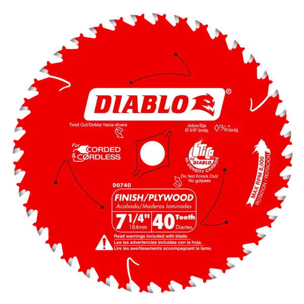 La lame de scie Finish de Diablo pour bois est idéale pour des coupes transversales de finition lisses dans le bois dur, le bois tendre ou le contreplaqué. Les lames Finish de Diablo sont le choix parfait pour d’excellentes coupes longitudinales et transversales avec une scie portable. Elles offrent un bord plus lisse que les lames de charpente, tout en fournissant une excellente combinaison de vitesse de coupe et de longue durée de vie. Un excellent choix pour les coupes de finition sur chantier dans le bois 1X, les terrasses, clôtures, fascias et contreplaqué.