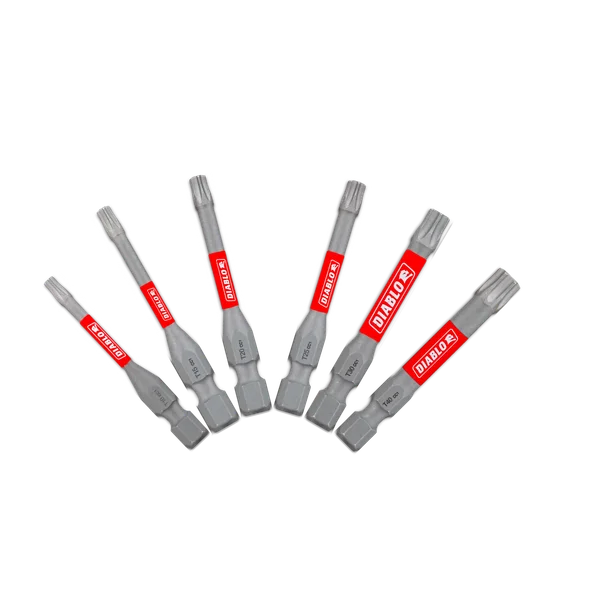 La gamme de mèches Torx de Diablo offre des performances maximales, une durabilité extrême et jusqu’à 50 fois plus de longévité lors de l’installation et du retrait de fixations. Une conception optimisée de la pointe assure une prise solide et précise, réduisant l’usure, le dénudage et le glissement. La zone MaxTorque (MaxTorque Zone) offre une résistance ultime au couple en absorbant le couple, ce qui réduit le stress sur la pointe lors du serrage et du desserrage des écrous et vis. Cette gamme est Impact Strong™, offrant une stabilité et une durabilité accrues du manche sur les perceuses et visseuses à percussion filaires ou sans fil.
