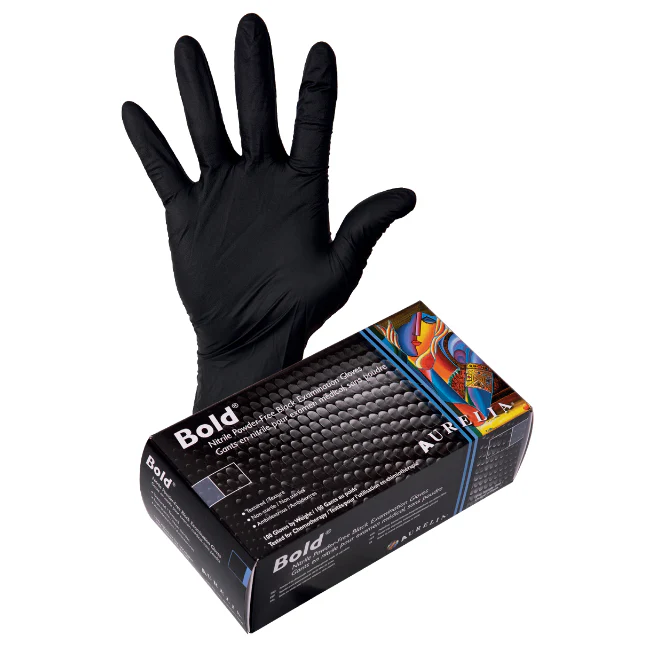 100/BOX GANTS EN NITRILE AURELIA BOLD, NOIR,QUALITÉ MÉDICALE, 5,0 MIL SANS POUDRE