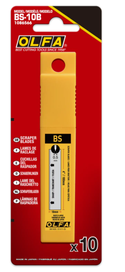 Aborder les projets de grattage et de retrait avec facilité en utilisant les lames de grattage à double bord Olfa 100mm BS-10B. Ces lames en acier à outils en carbone premium de 4 pouces ont deux bords distincts. Sélectionnez le bord pointu pour le grattage fin tel que la peinture, les adhésifs, le coulis, le ruban et plus encore. Choisissez le bord émoussé pour les travaux de démolition comme les carreaux, les bardeaux et plus encore.