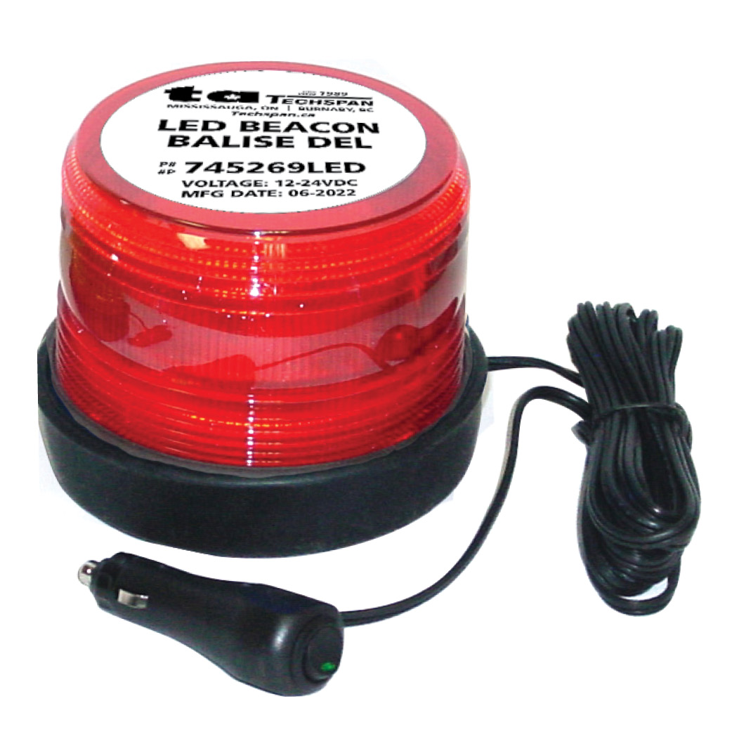 BEACON LED RED JR RUBB-BASE DBL-FLA MAGN MNT 12-24VDC U/M PC
