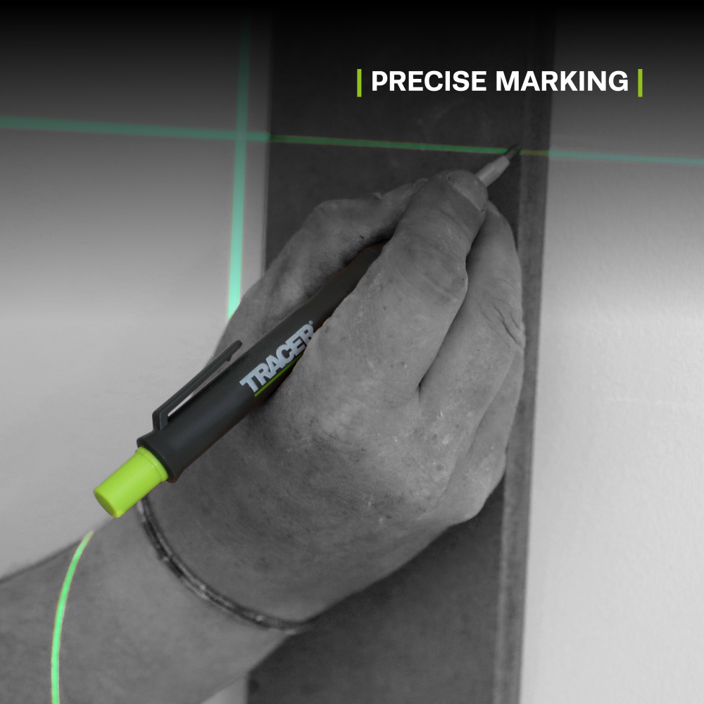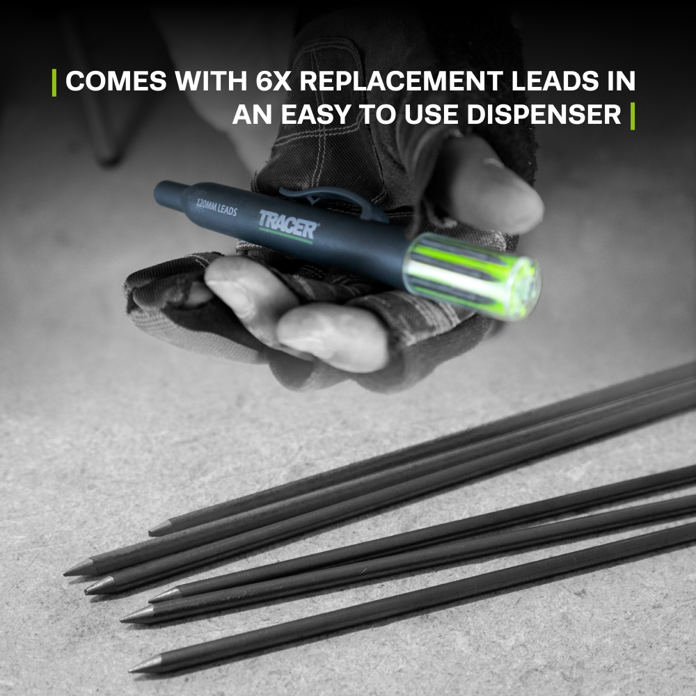 Le crayon de chantier TRACER Deep Hole avec set de mines de rechange est la solution idéale pour marquer dans les endroits difficiles d’accès. Conçu pour surpasser les crayons de charpentier traditionnels, ce marqueur polyvalent à mine 2B dispose d’une mine entièrement extensible et rétractable, permettant de marquer jusqu’à 100 mm de profondeur dans un trou de 3 mm et jusqu’à 145 mm dans un trou de 6 mm. Que vous travailliez le bois, l’électricité, les carreaux, la tuyauterie ou le métal, ce crayon de chantier extra-long offre des lignes nettes et précises là où d’autres marqueurs ne peuvent pas atteindre. L’étui TRACER inclus assure un rangement sécurisé et un accès facile, tandis que le taille-crayon intégré maintient la mine toujours prête pour le marquage. Le pack de 6 mines de rechange 2B de 120 mm, anti-casse, est rangé dans un distributeur robuste pour un changement rapide sur chantier. Parfait pour l’électricité, la plomberie, le gros œuvre, la finition et les installations, cet outil est conçu pour gérer facilement les espaces les plus étroits et difficiles d’accès.