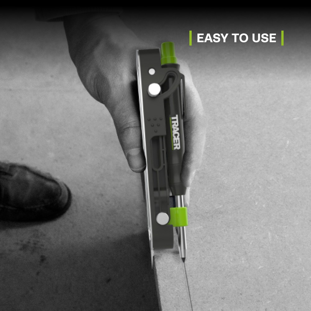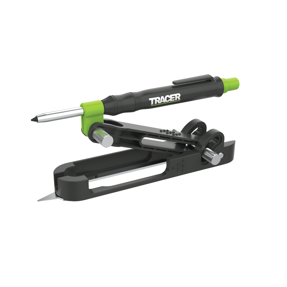 Le TRACER ProScribe est un outil de traçage multifonctionnel offrant plus de 15 applications de marquage, incluant le marquage parallèle, le traçage de profil, le compas et plus encore. Le kit TRACER ProScribe est idéal pour les professionnels, comprenant un crayon de chantier Deep Hole, des mines de rechange et des étuis de chantier, le tout rangé dans un étui de transport de haute qualité.